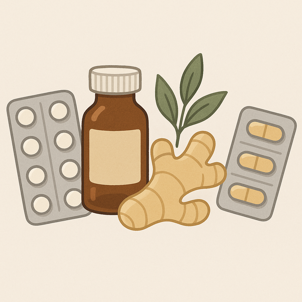 영양제 → 자연스러운 조절 / 약 → 즉각적인 통증 완화 / 차나 온열패드 → 부드러운 보완